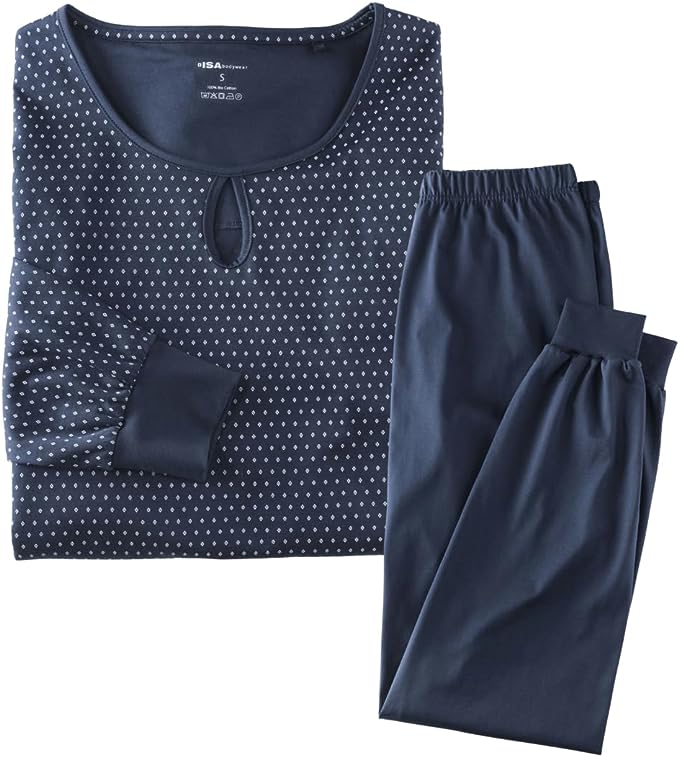 ISA Bodywear women's pajamas are perfect for cozy evenings and relaxed nights. The soft texture gently hugs your skin, contributing to a restful sleep. The round neckline provides a comfortable fit, and its timeless design makes it an indispensable part of your wardrobe. Made with 100% cotton bio, our pajama is perfect for sleeping, relaxing and lounging. Great gift for your wife, girlfriend, fiance, daughter and mother. Suitable for a normal colour wash and a gentle drying process. Can be professionally dry cleaned and can resist moderate hot ironing. Do not bleach.